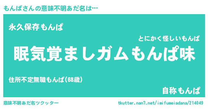 | ヘコむあだ名 | 『もんぱ(笑)』『もんぷりん』『豆乳』 |