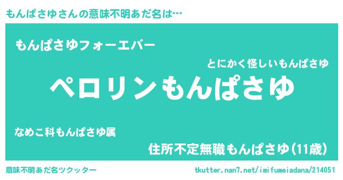 | 欧米人風あだ名 | 『マイケルもんぱさゆ』 |