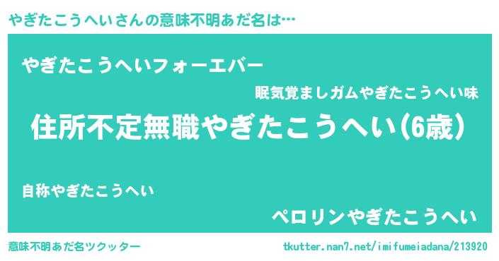 | 料理風あだ名 | 『やぎたこうへいのカルパッチョ風』 |