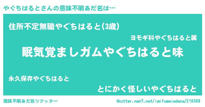 | ヘコむあだ名 | 『やぐっぺ』『やぐちはると(遠い目)』 |