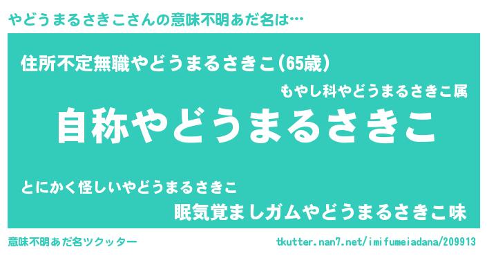 | 欧米人風あだ名 | 『ケンブリッジやどうまるさきこ』 |
