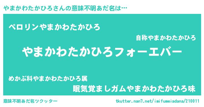 | ファンタジー風あだ名 | 『エターナルヤマカワタカヒロー』 |