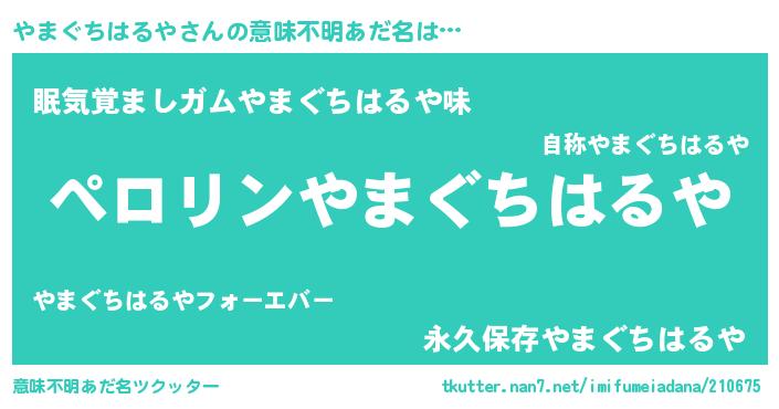 | ヘコむあだ名 | 『やまふぇ~』『やまぐちはるや(笑)』 |
