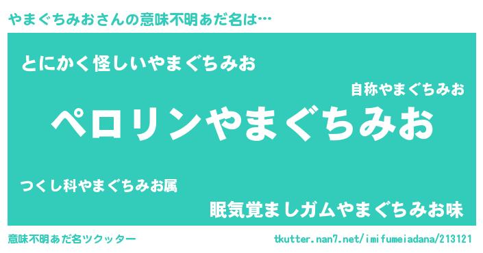 | ヒーロー風カッコイイあだ名 | 『スーパーヤマグチミオ』『幻影騎士ヤマ』 |