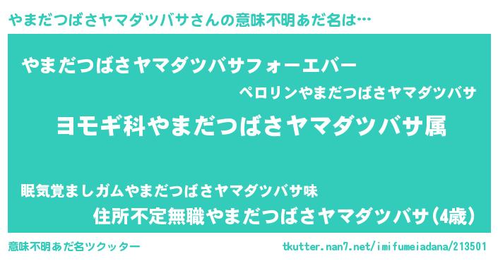 | 胡散臭い通販商品みたいなあだ名 | 『運命の人と巡り会える高級そうな壺…その名も「やまだつばさヤマダツバサ」』 |