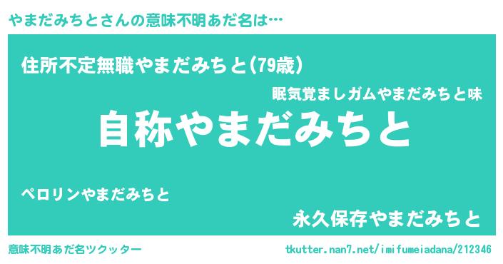 | 男性向けラノベタイトル風あだ名 | 『Re:やまだみちとから始める異世界生活』 |