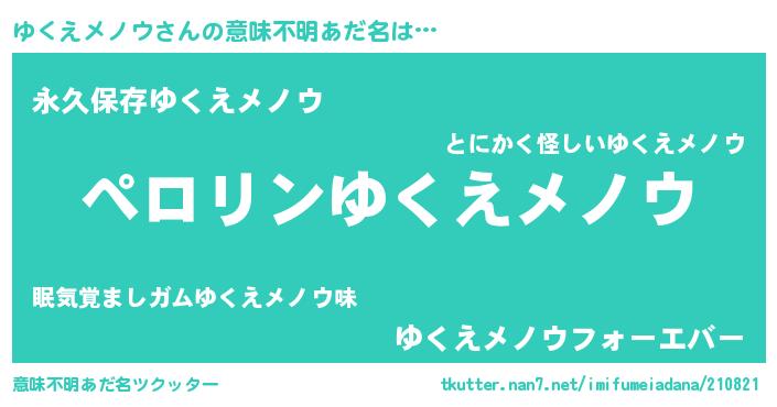 | ヘコむあだ名 | 『ゆくにー』『ゆくえメノウ(震え声)』 |