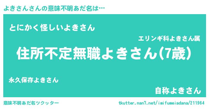 | ヘコむあだ名 | 『よきを』『よきさん(遠い目)』 |