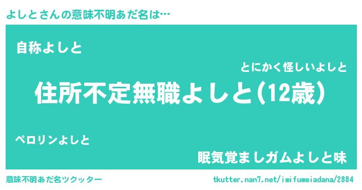 | 男性向けラノベタイトル風あだ名 | 『この素晴らしい世界によしとを!』 |