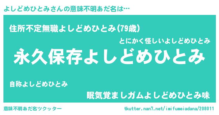 | 欧米人風あだ名 | 『ダルビッシュよしどめひとみ』 |