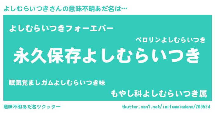 | 胡散臭い通販商品みたいなあだ名 | 『来世でも幸せになれる水素水…その名も「よしむらいつき」』 |
