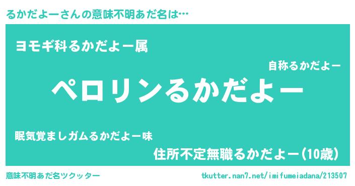| 男性向けラノベタイトル風あだ名 | 『るかだよーの憂鬱』 |