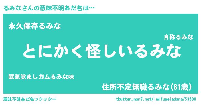 | ヘコむあだ名 | 『るみお』『るみな(爆)』『つくし』 |