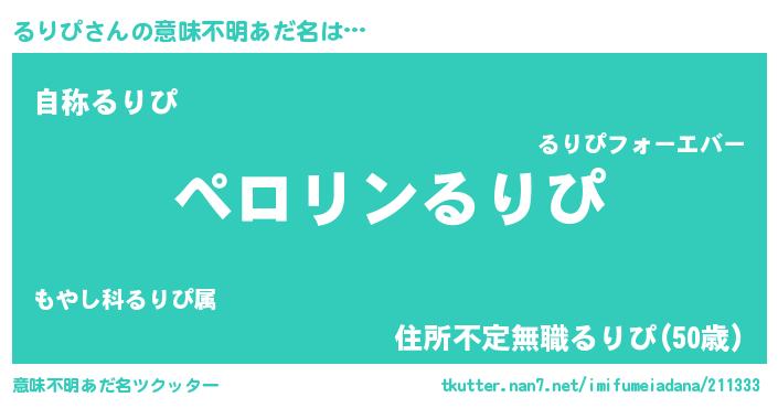 | ヒーロー風カッコイイあだ名 | 『スーパールリピ』『サイバー戦士ルリピ』 |