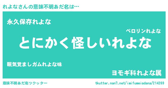 | 料理風あだ名 | 『れよなの豆乳スープ』『れよなごはん』 |