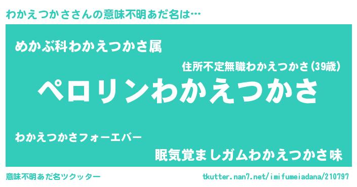 | 男性向けラノベタイトル風あだ名 | 『わかえつかさの憂鬱』 |