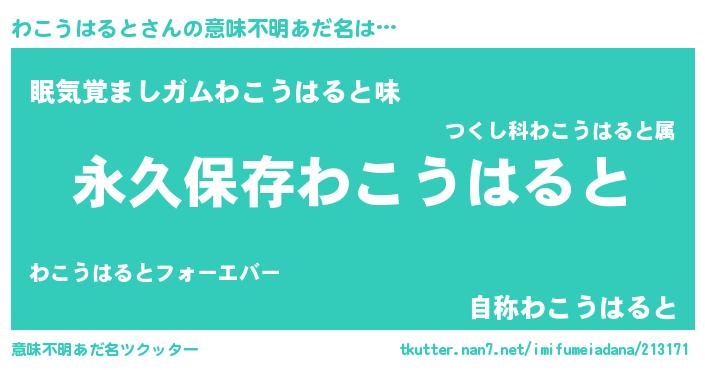 | 男性向けラノベタイトル風あだ名 | 『わこうはるとという概念が存在しない退屈な世界 』 |