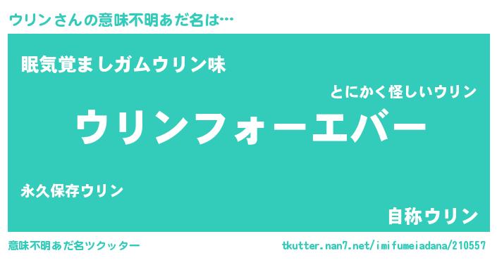 | 女子向けラノベタイトル風あだ名 | 『ウリンの雑貨屋さん』『ウリン恋絵巻』 |