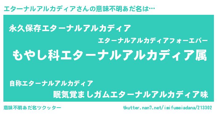 | ヘコむあだ名 | 『エターナルアルカディア(震え声)』 |