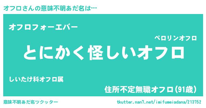 | ポケモン風あだ名 | 『ヒオフロ』『オフゴンZ』『オーフイ』 |