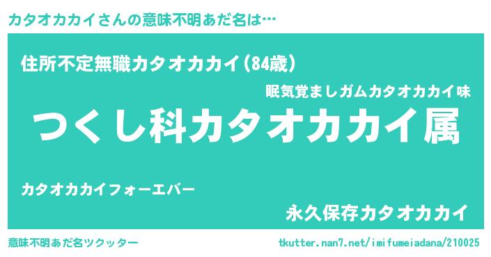 | ヒーロー風カッコイイあだ名 | 『仮面カタダー』『ネオカタオカカイ』 |