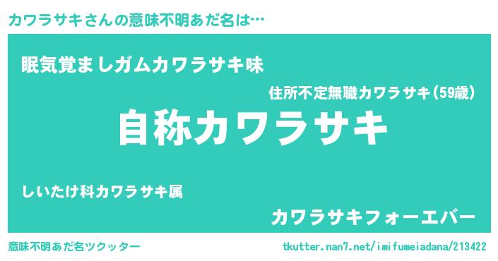 | ヒーロー風カッコイイあだ名 | 『サイバー戦士カワラサキ』 |