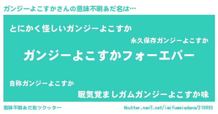 | ポケモン風あだ名 | 『ガンジダネ』『ヒガンジーヨコスカ』 |