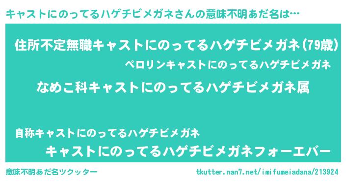 | 欧米人風あだ名 | 『トリンドルキャストにのってるハゲチビメガネ』 |