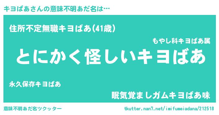 | 女子向けラノベタイトル風あだ名 | 『キヨばあの卵を拾いまして』 |