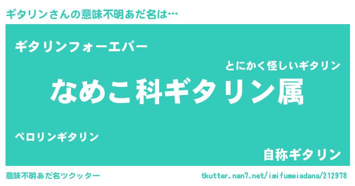 | 男性向けラノベタイトル風あだ名 | 『転生したらギタリンだった件』 |