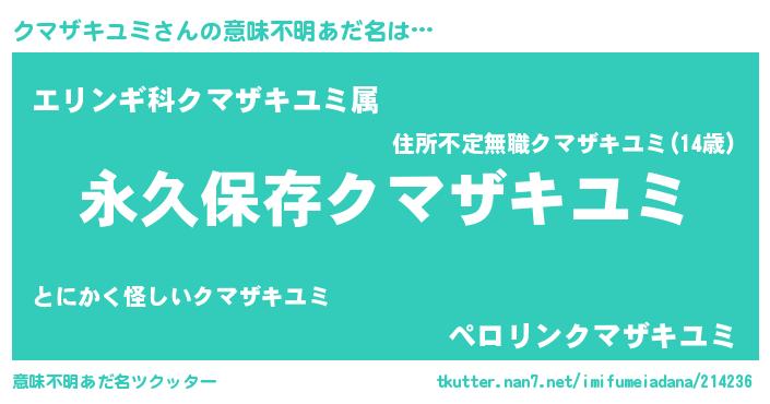 | ヘコむあだ名 | 『クマザキユミ(笑)』『クマにゅー』 |