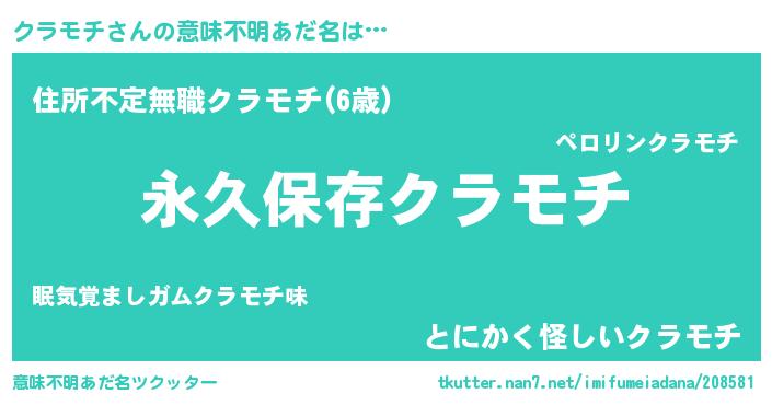 | 胡散臭い通販商品みたいなあだ名 | 『前代未聞の水素水…その名も「クラモチ」』 |