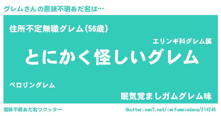 | ポケモン風あだ名 | 『ヒグレム』『グーレイ』『グレゴンZ』 |