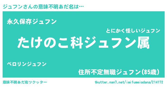 | ヘコむあだ名 | 『ジュフン(笑)』『ジュを』『豆乳』 |