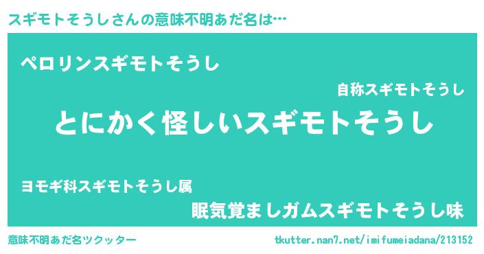 | ポケモン風あだ名 | 『ヒスギモトソウシ』『スギチュウ』 |