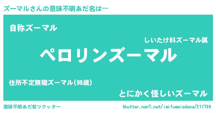 | ヒーロー風カッコイイあだ名 | 『スーパーズーマル』『最強戦士ズーマル』 |