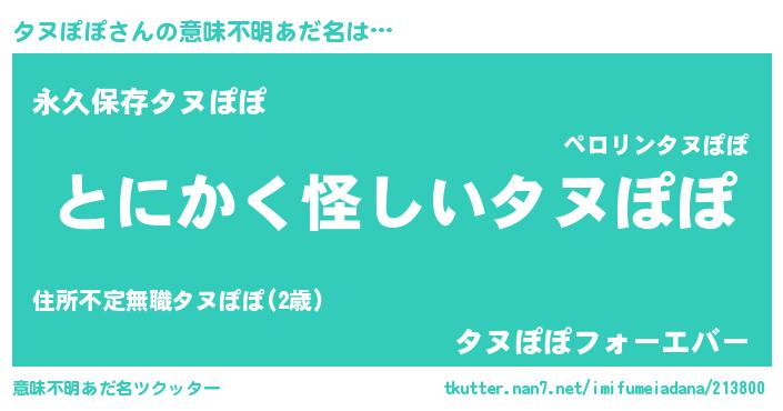 | ポケモン風あだ名 | 『ヒタヌポポ』『ゼニタヌ』 |