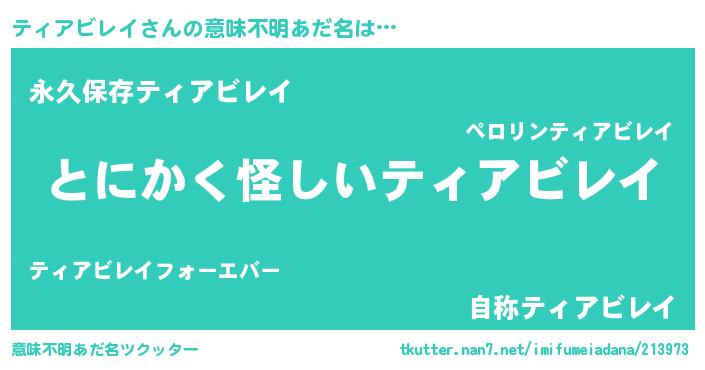 | 男性向けラノベタイトル風あだ名 | 『ティアビレイに滅ぼされるだけの簡単なお仕事です』 |