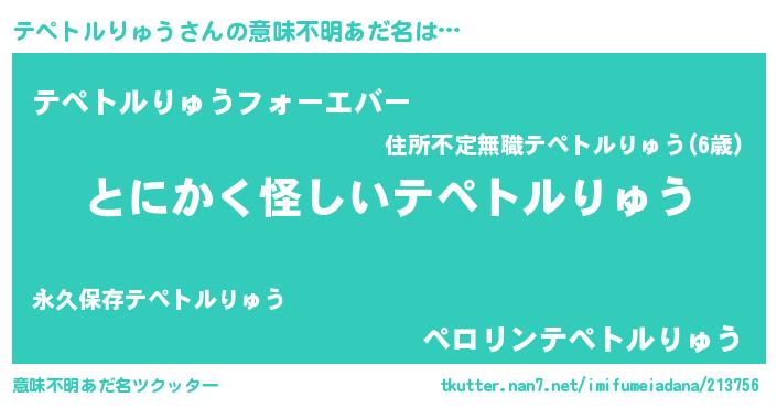 | 女子向けラノベタイトル風あだ名 | 『テペトルりゅう様がみてる』 |