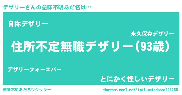 | 男性向けラノベタイトル風あだ名 | 『この素晴らしい世界にデザリーを!』 |