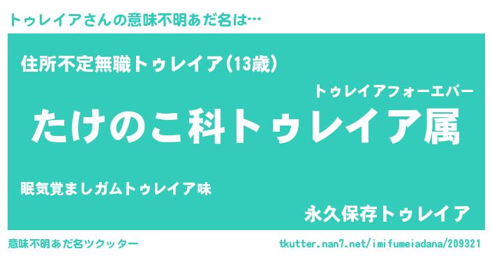 | ヘコむあだ名 | 『トゥレイア(笑)』『牛乳』『トゥお』 |