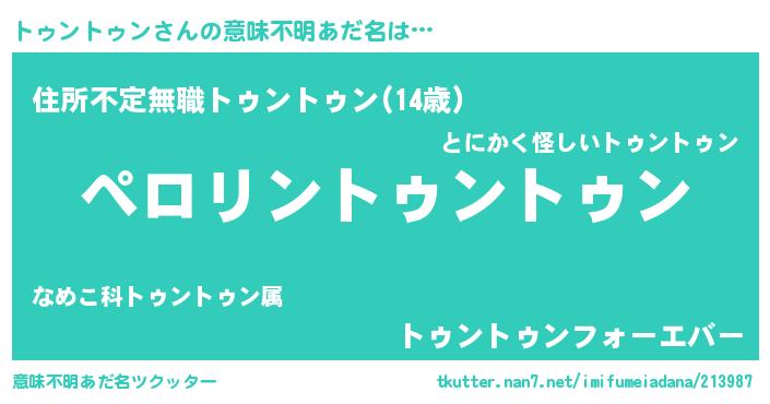 | 男性向けラノベタイトル風あだ名 | 『トゥントゥンアートオンライン』 |