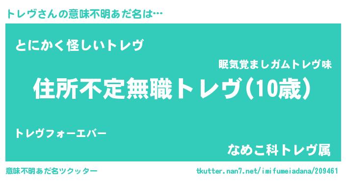 | 男性向けラノベタイトル風あだ名 | 『この素晴らしい世界にトレヴを!』 |