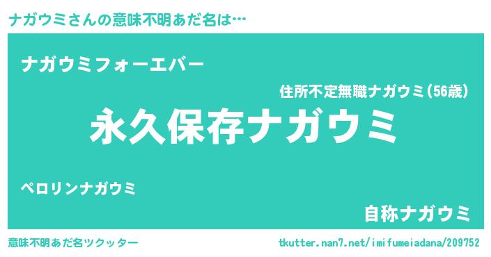 | 胡散臭い通販商品みたいなあだ名 | 『来世でも幸せになれる健康食品…その名も「ナガウミ」』 |