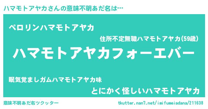 | ファンタジー風あだ名 | 『エターナルハマモトアヤカー』 |