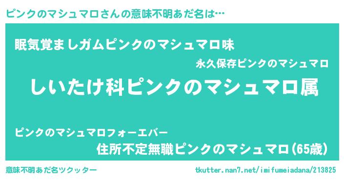 | 男性向けラノベタイトル風あだ名 | 『ピンクノマシュマロスレイヤー』 |