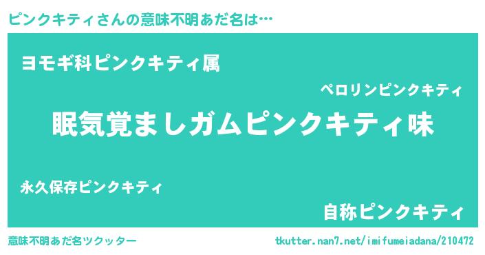 | 女子向けラノベタイトル風あだ名 | 『ピンクキティ恋絵巻』 |