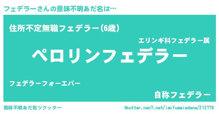 | 男性向けラノベタイトル風あだ名 | 『フェデラーの憂鬱』 |