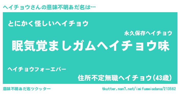 | ヘコむあだ名 | 『ヘイを』『ヘイチョウ(遠い目)』 |