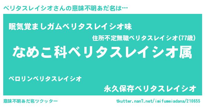| 男性向けラノベタイトル風あだ名 | 『転生したらベリタスレイシオだった件』 |